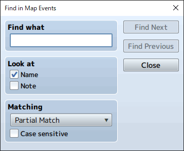 - Shows the contents of the current map. Used for design editing and specifying the location for placing events.