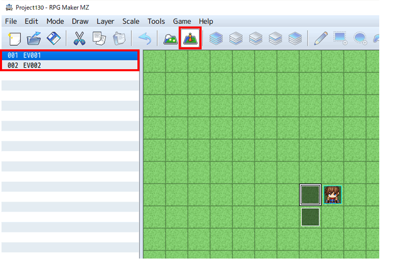 To create and edit Map Events, switch to event editing mode by clicking the [Events] button on the Main Window's toolbar (or by going to [Mode] → [Events] in the menu bar).
